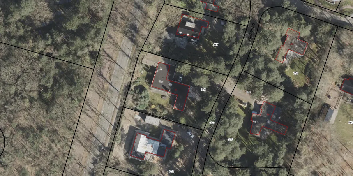 Het perceel waarop Vossepad 9 staat heeft een oppervlakte van 1663 m². Dit is een zeer groot perceel. De perceeloppervlakte wordt geregistreerd door het Kadaster. Gedetailleerde informatie over de maten van dit perceel kunt u vinden in het rapport Kadastrale kaart met maatvoering van Vossepad 9.