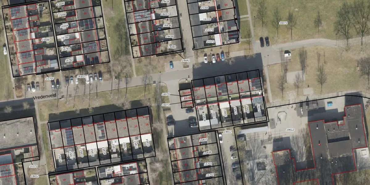 Vredenveld 22-GB2 is gelegen op kadastraal perceel EMN00F16070. Deze kadastrale aanduiding is uniek en wordt gebruikt door het Kadaster om eigendomsrechten en andere zakelijke rechten vast te leggen. Het perceel maakt onderdeel uit van de kadastrale gemeente Emmen.
