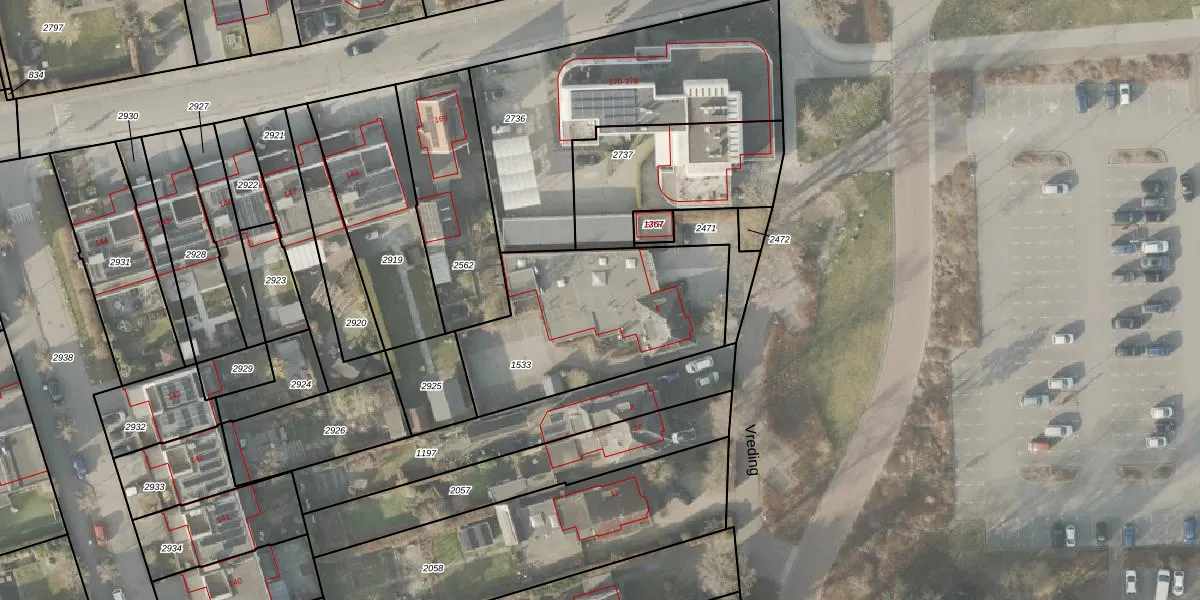 Gebruik de zoekbalk of klik op een perceel voor informatie over de adressen binnen dit perceel.