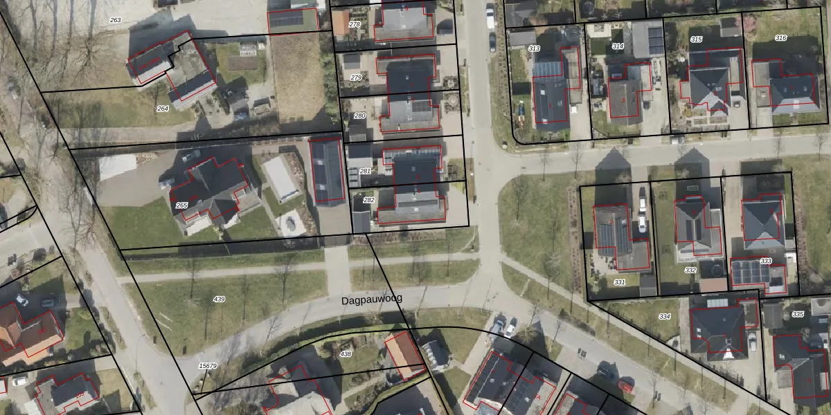 Het perceel waarop Vuurvlinder 1 staat heeft een oppervlakte van 310 m². Dit is een groot perceel. De perceeloppervlakte wordt geregistreerd door het Kadaster. Gedetailleerde informatie over de maten van dit perceel kunt u vinden in het rapport Kadastrale kaart met maatvoering van Vuurvlinder 1.