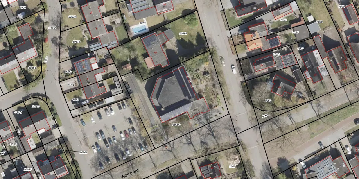 Het perceel waarop Walstraat 21 staat heeft een oppervlakte van 1877 m². Dit is een zeer groot perceel. De perceeloppervlakte wordt geregistreerd door het Kadaster. Gedetailleerde informatie over de maten van dit perceel kunt u vinden in het rapport Kadastrale kaart met maatvoering van Walstraat 21.