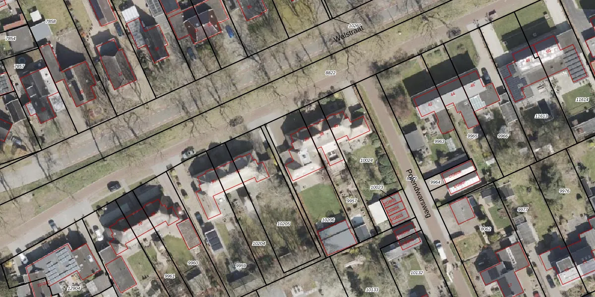 Het perceel waarop Walstraat 36 staat heeft een oppervlakte van 626 m². Dit is een groot perceel. De perceeloppervlakte wordt geregistreerd door het Kadaster. Gedetailleerde informatie over de maten van dit perceel kunt u vinden in het rapport Kadastrale kaart met maatvoering van Walstraat 36.