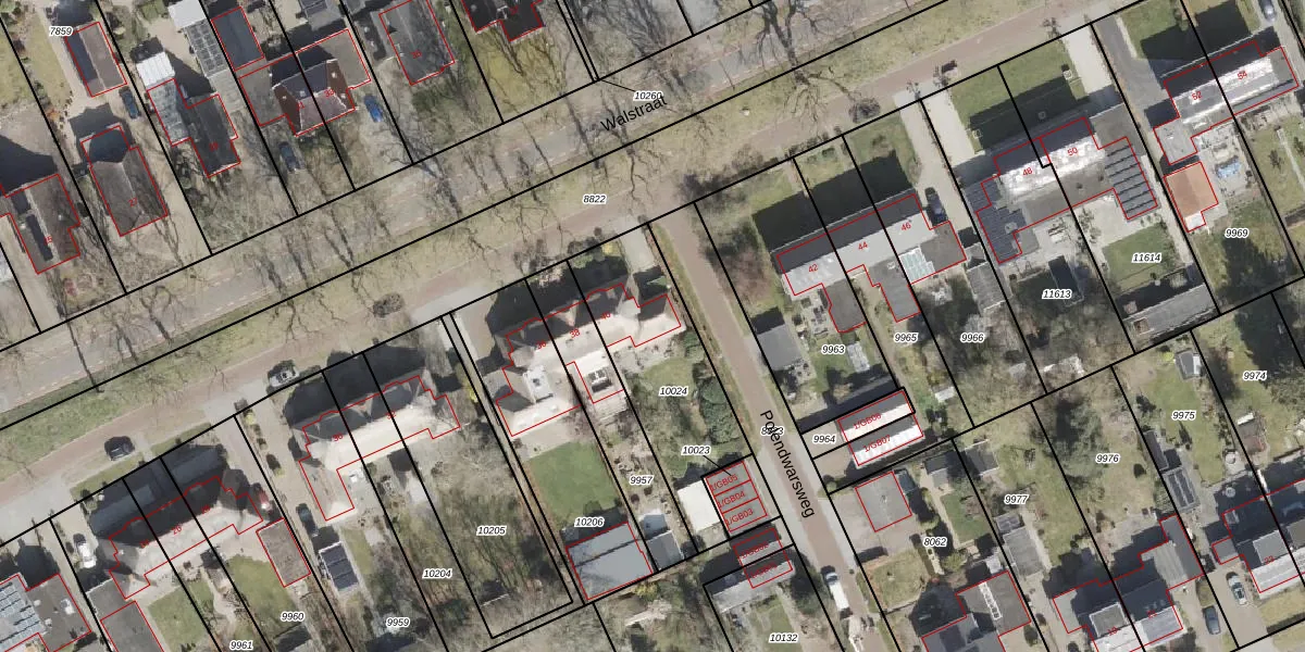 Het perceel waarop Walstraat 40 staat heeft een oppervlakte van 595 m². Dit is een groot perceel. De perceeloppervlakte wordt geregistreerd door het Kadaster. Gedetailleerde informatie over de maten van dit perceel kunt u vinden in het rapport Kadastrale kaart met maatvoering van Walstraat 40.