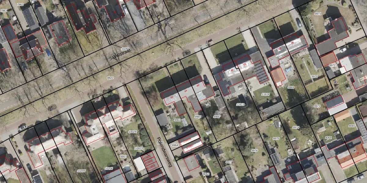 Het perceel waarop Walstraat 44 staat heeft een oppervlakte van 498 m². Dit is een groot perceel. De perceeloppervlakte wordt geregistreerd door het Kadaster. Gedetailleerde informatie over de maten van dit perceel kunt u vinden in het rapport Kadastrale kaart met maatvoering van Walstraat 44.