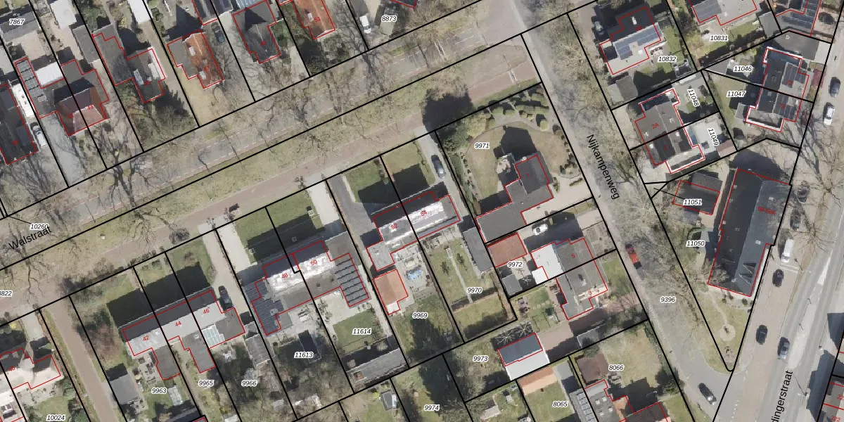 Het perceel waarop Walstraat 54 staat heeft een oppervlakte van 680 m². Dit is een groot perceel. De perceeloppervlakte wordt geregistreerd door het Kadaster. Gedetailleerde informatie over de maten van dit perceel kunt u vinden in het rapport Kadastrale kaart met maatvoering van Walstraat 54.