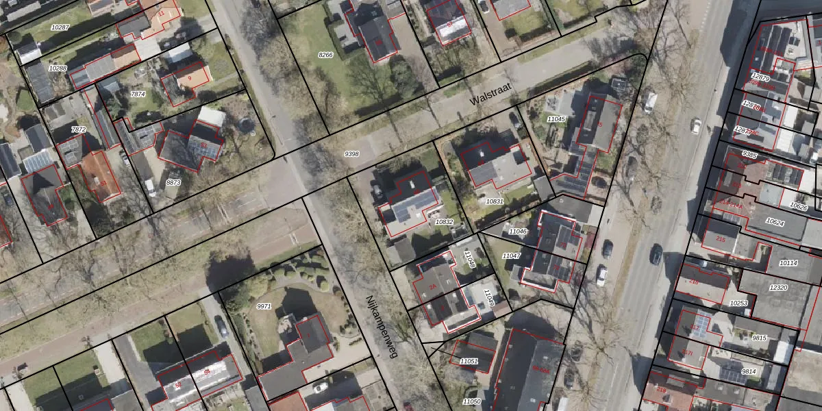 Gebruik de zoekbalk of klik op een perceel voor informatie over de adressen binnen dit perceel.