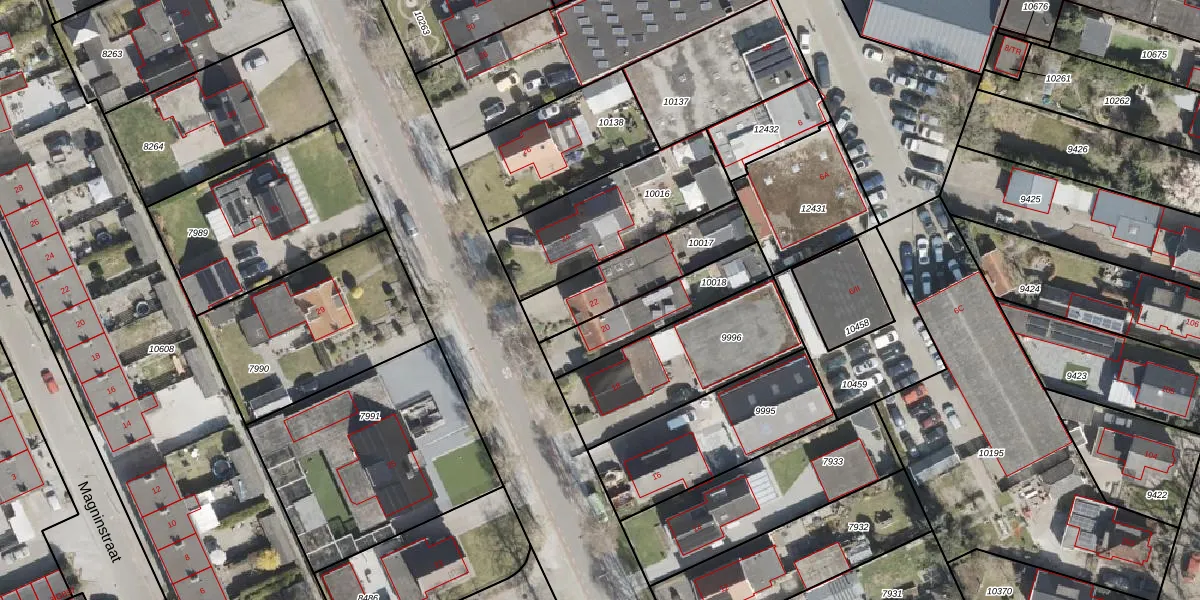 Gebruik de zoekbalk of klik op een perceel voor informatie over de adressen binnen dit perceel.