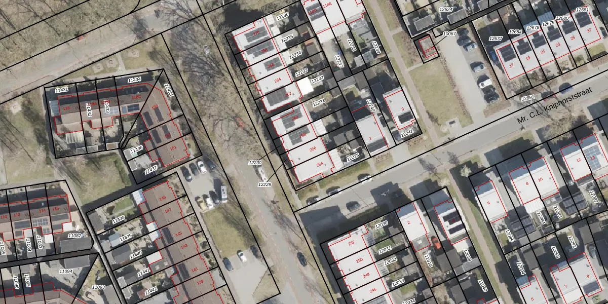 Gebruik de zoekbalk of klik op een perceel voor informatie over de adressen binnen dit perceel.