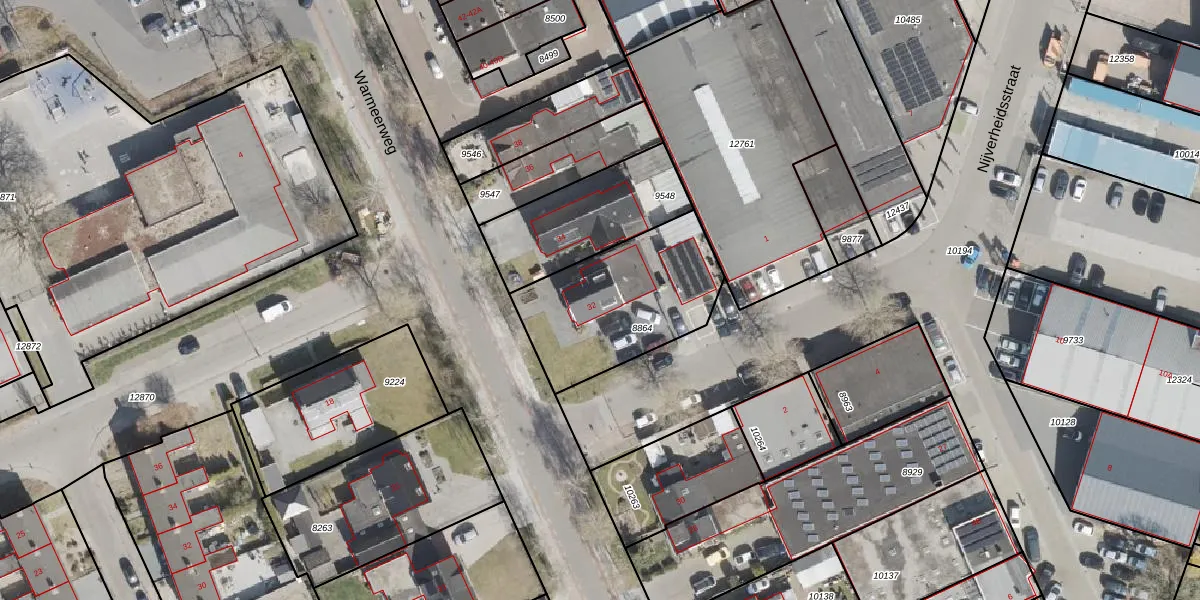 Gebruik de zoekbalk of klik op een perceel voor informatie over de adressen binnen dit perceel.