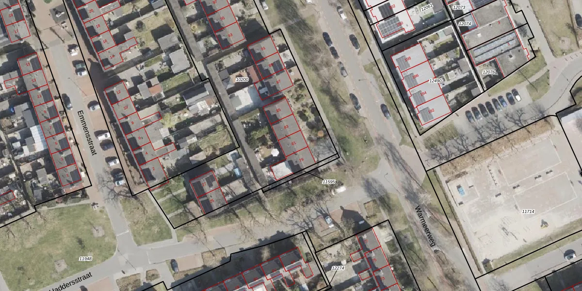 Warmeerweg 81 is gelegen op kadastraal perceel EMN00C10200. Deze kadastrale aanduiding is uniek en wordt gebruikt door het Kadaster om eigendomsrechten en andere zakelijke rechten vast te leggen. Het perceel maakt onderdeel uit van de kadastrale gemeente Emmen.
