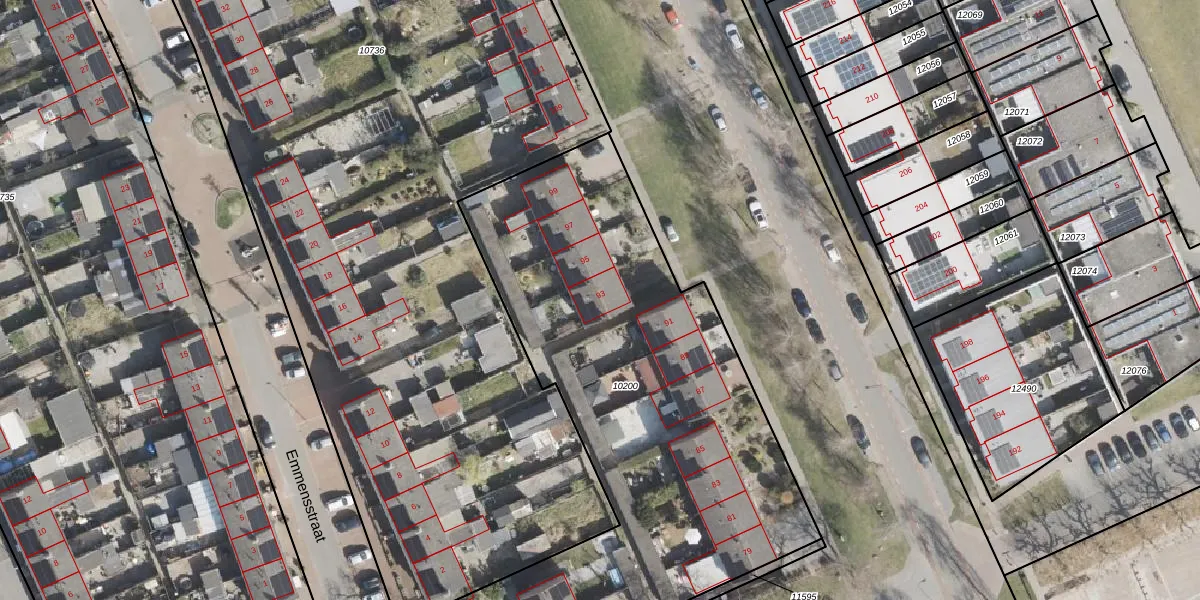 Het perceel waarop het adres ligt is EMN00-C-10200. De afkorting 'EMN00' staat voor kadastrale gemeente Emmen. De gemiddelde perceelgrootte in Emmen is 5229,33 m². Dit perceel is kleiner: de perceeloppervlakte bedraagt 2757 m². Het grootste perceel in de kadastrale gemeente is 1,29 km². Het kleinste perceel heeft een oppervlakte van 0 m². Op het perceel liggen in totaal 13 adressen. In de Basisregistratie Kadaster (BRK) werden de grenzen van het perceel geregistreerd op 19-03-2007.