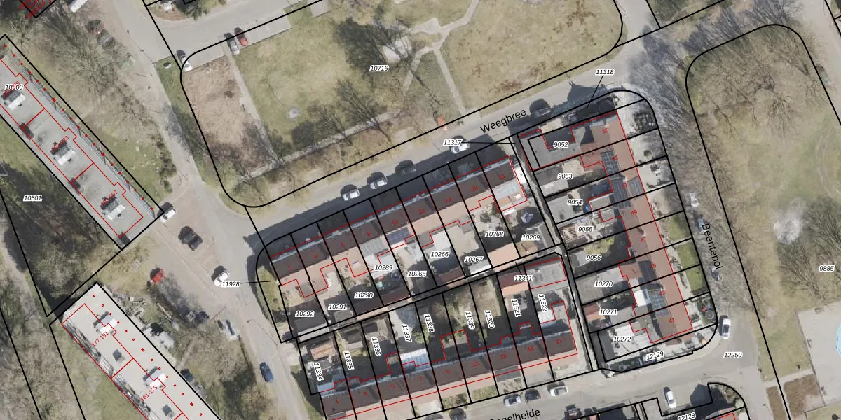 Gebruik de zoekbalk of klik op een perceel voor informatie over de adressen binnen dit perceel.