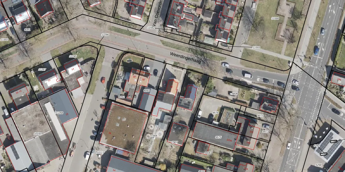 Weerdingerhaag 18 is gelegen op kadastraal perceel EMN00C7906. Deze kadastrale aanduiding is uniek en wordt gebruikt door het Kadaster om eigendomsrechten en andere zakelijke rechten vast te leggen. Het perceel maakt onderdeel uit van de kadastrale gemeente Emmen.