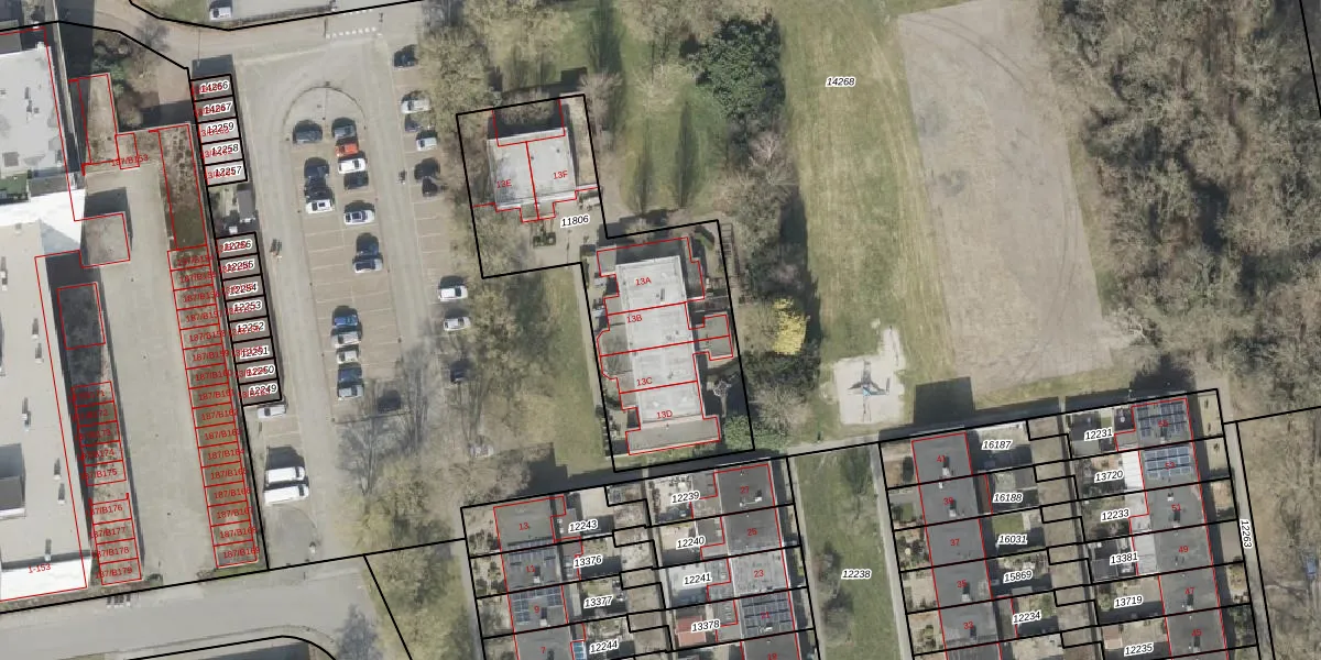 Het perceel waarop Wendeling 13-B staat heeft een oppervlakte van 1230 m². Dit is een zeer groot perceel. De perceeloppervlakte wordt geregistreerd door het Kadaster. Gedetailleerde informatie over de maten van dit perceel kunt u vinden in het rapport Kadastrale kaart met maatvoering van Wendeling 13-B.