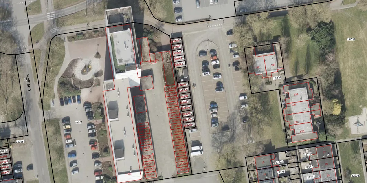 Gebruik de zoekbalk of klik op een perceel voor informatie over de adressen binnen dit perceel.