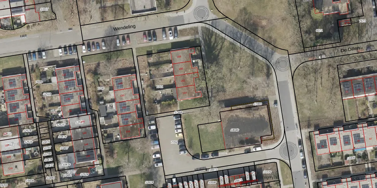 Het perceel waarop Wendeling 164 staat heeft een oppervlakte van 1100 m². Dit is een zeer groot perceel. De perceeloppervlakte wordt geregistreerd door het Kadaster. Gedetailleerde informatie over de maten van dit perceel kunt u vinden in het rapport Kadastrale kaart met maatvoering van Wendeling 164.