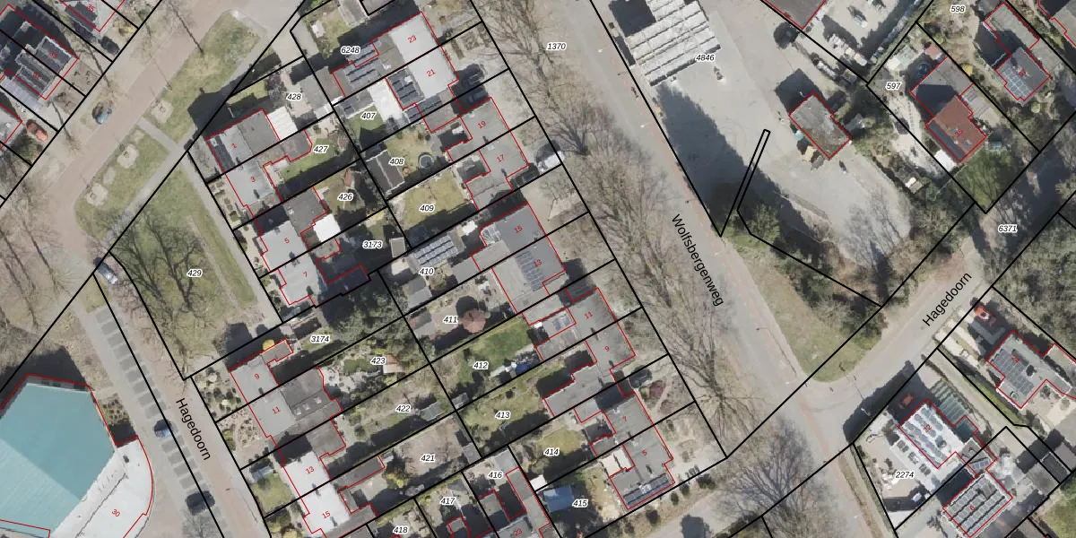 Gebruik de zoekbalk of klik op een perceel voor informatie over de adressen binnen dit perceel.