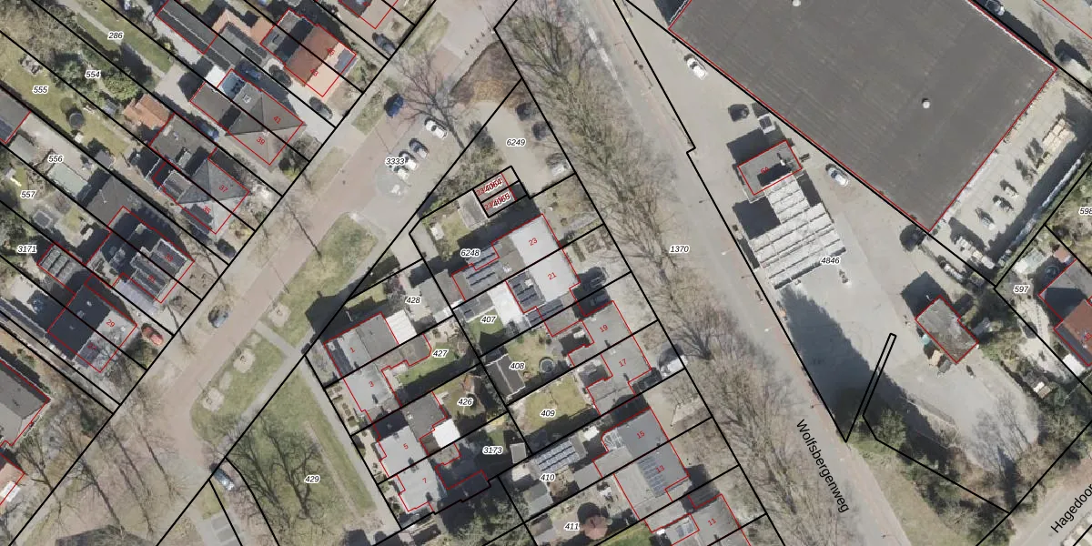 Het perceel waarop Wolfsbergenweg 21 staat heeft een oppervlakte van 323 m². Dit is een groot perceel. De perceeloppervlakte wordt geregistreerd door het Kadaster. Gedetailleerde informatie over de maten van dit perceel kunt u vinden in het rapport Kadastrale kaart met maatvoering van Wolfsbergenweg 21.