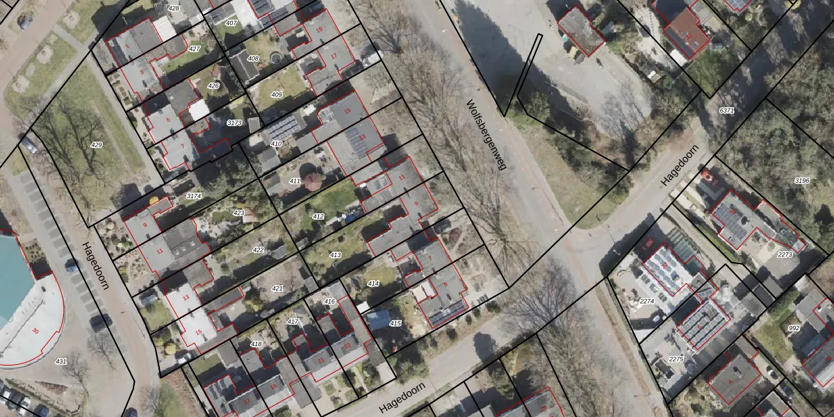 Gebruik de zoekbalk of klik op een perceel voor informatie over de adressen binnen dit perceel.