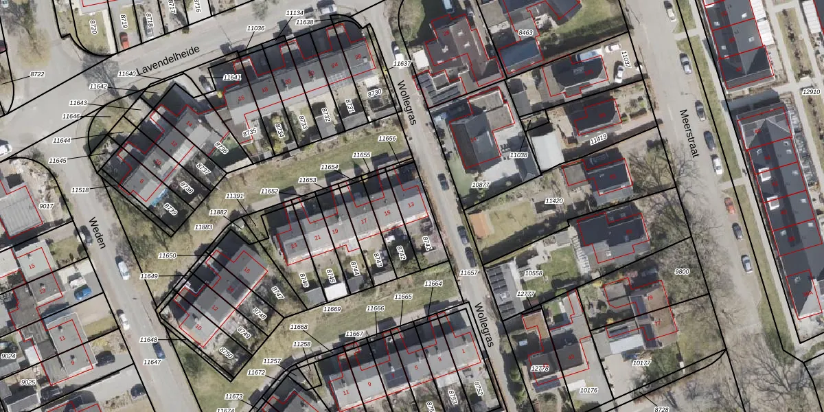Gebruik de zoekbalk of klik op een perceel voor informatie over de adressen binnen dit perceel.