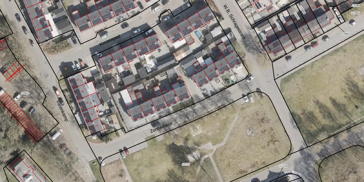 Zonnedauw 9 is gelegen op kadastraal perceel EMN00C10715. Deze kadastrale aanduiding is uniek en wordt gebruikt door het Kadaster om eigendomsrechten en andere zakelijke rechten vast te leggen. Het perceel maakt onderdeel uit van de kadastrale gemeente Emmen.