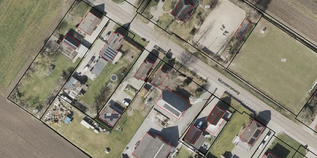 Het perceel waarop Munsterseweg 11 staat heeft een oppervlakte van 4920 m². Dit is een zeer groot perceel. De perceeloppervlakte wordt geregistreerd door het Kadaster. Gedetailleerde informatie over de maten van dit perceel kunt u vinden in het rapport Kadastrale kaart met maatvoering van Munsterseweg 11.