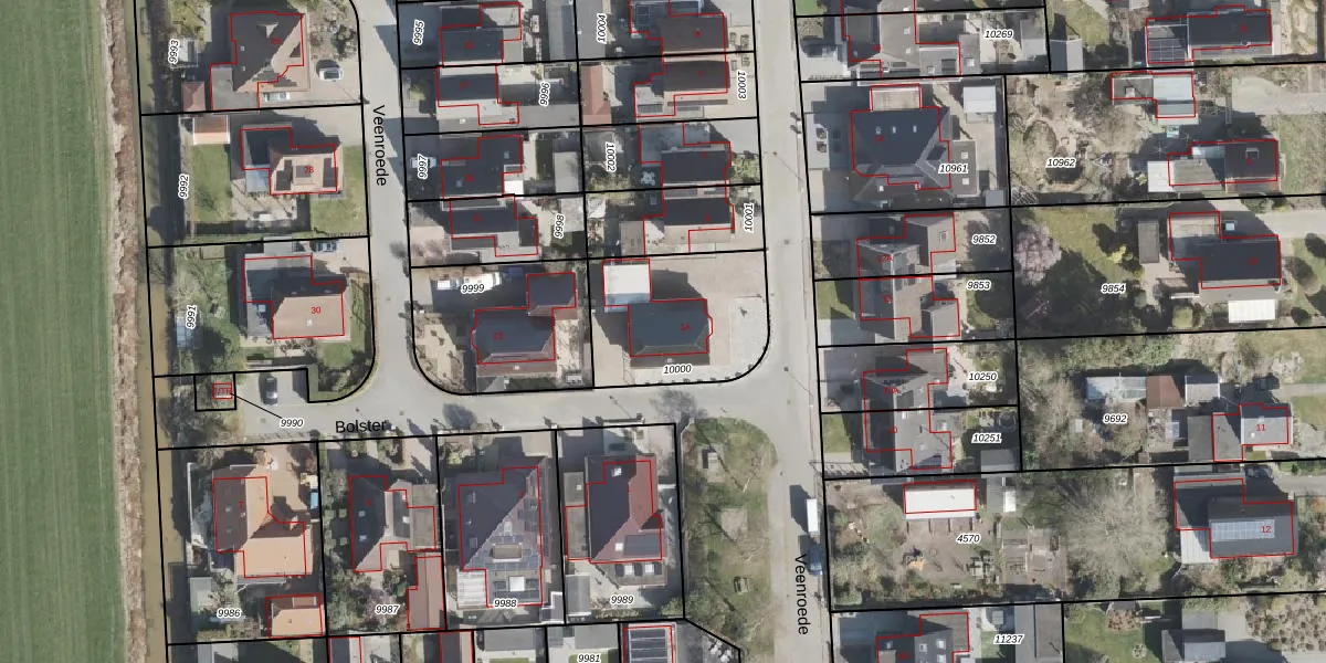 Het perceel waarop Veenroede 1-A staat heeft een oppervlakte van 511 m². Dit is een groot perceel. De perceeloppervlakte wordt geregistreerd door het Kadaster. Gedetailleerde informatie over de maten van dit perceel kunt u vinden in het rapport Kadastrale kaart met maatvoering van Veenroede 1-A.