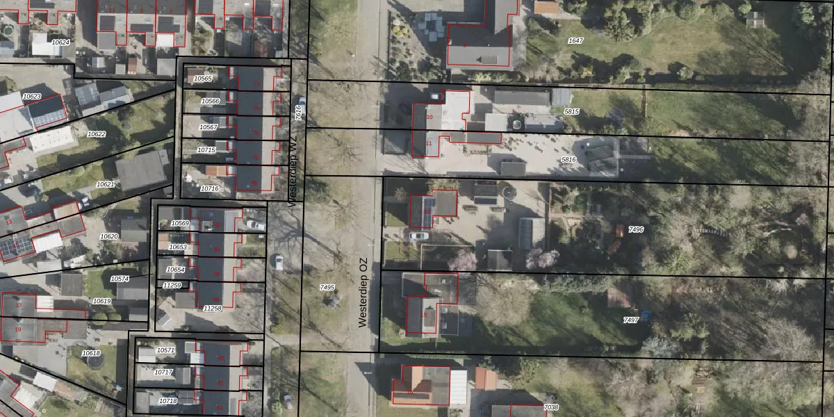 Het perceel waarop Westerdiep OZ 12 staat heeft een oppervlakte van 2369 m². Dit is een zeer groot perceel. De perceeloppervlakte wordt geregistreerd door het Kadaster. Gedetailleerde informatie over de maten van dit perceel kunt u vinden in het rapport Kadastrale kaart met maatvoering van Westerdiep OZ 12.