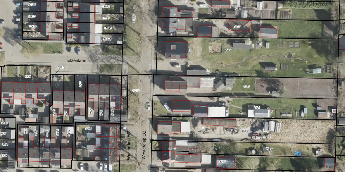 Gebruik de zoekbalk of klik op een perceel voor informatie over de adressen binnen dit perceel.