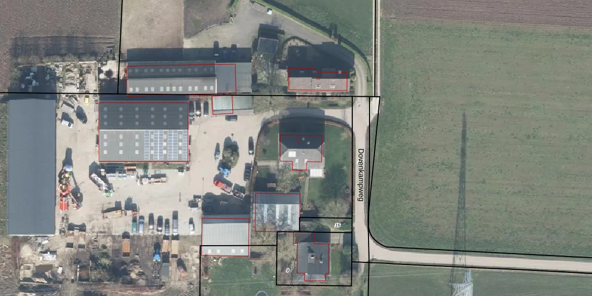 Het perceel waarop Dovenkampweg 3 staat heeft een oppervlakte van 4,0 ha. Dit is een zeer groot perceel. De perceeloppervlakte wordt geregistreerd door het Kadaster. Gedetailleerde informatie over de maten van dit perceel kunt u vinden in het rapport Kadastrale kaart met maatvoering van Dovenkampweg 3.