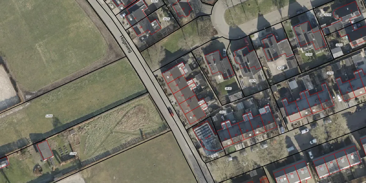 Het perceel waarop Hogeweg 44 staat heeft een oppervlakte van 1792 m². Dit is een zeer groot perceel. De perceeloppervlakte wordt geregistreerd door het Kadaster. Gedetailleerde informatie over de maten van dit perceel kunt u vinden in het rapport Kadastrale kaart met maatvoering van Hogeweg 44.