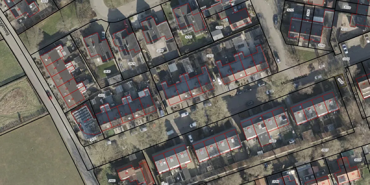 Het perceel waarop Hullandstraat 22 staat heeft een oppervlakte van 1780 m². Dit is een zeer groot perceel. De perceeloppervlakte wordt geregistreerd door het Kadaster. Gedetailleerde informatie over de maten van dit perceel kunt u vinden in het rapport Kadastrale kaart met maatvoering van Hullandstraat 22.