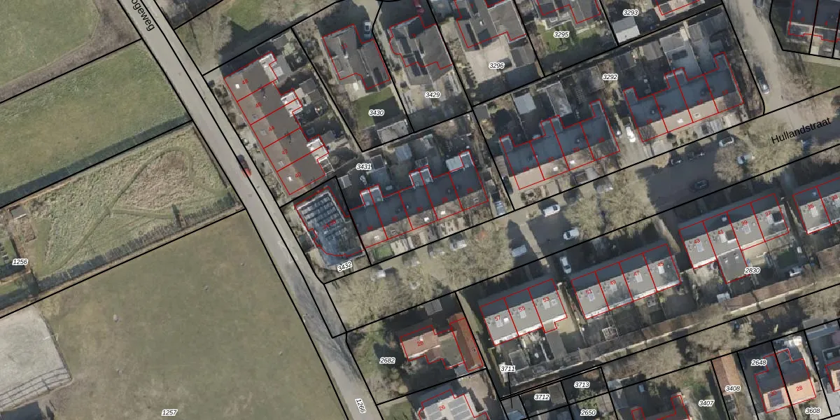 Het perceel waarop Hullandstraat 30 staat heeft een oppervlakte van 1792 m². Dit is een zeer groot perceel. De perceeloppervlakte wordt geregistreerd door het Kadaster. Gedetailleerde informatie over de maten van dit perceel kunt u vinden in het rapport Kadastrale kaart met maatvoering van Hullandstraat 30.