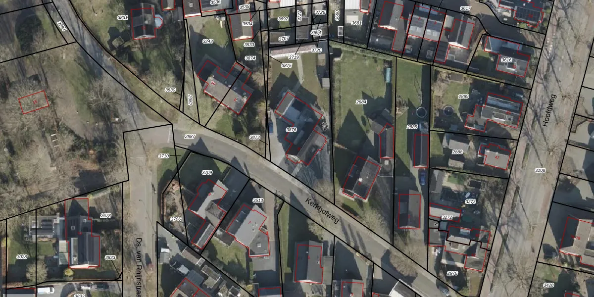 Gebruik de zoekbalk of klik op een perceel voor informatie over de adressen binnen dit perceel.
