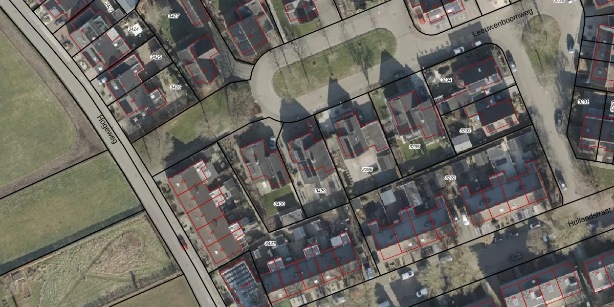 Gebruik de zoekbalk of klik op een perceel voor informatie over de adressen binnen dit perceel.
