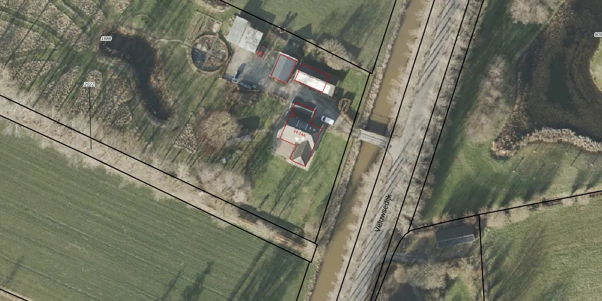 Veluwsedijk 14-A is gelegen op kadastraal perceel EPE00I1888. Deze kadastrale aanduiding is uniek en wordt gebruikt door het Kadaster om eigendomsrechten en andere zakelijke rechten vast te leggen. Het perceel maakt onderdeel uit van de kadastrale gemeente Epe en Oene.