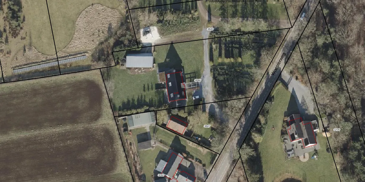 Het perceel waarop Woesterweg 4-A staat heeft een oppervlakte van 3172 m². Dit is een zeer groot perceel. De perceeloppervlakte wordt geregistreerd door het Kadaster. Gedetailleerde informatie over de maten van dit perceel kunt u vinden in het rapport Kadastrale kaart met maatvoering van Woesterweg 4-A.