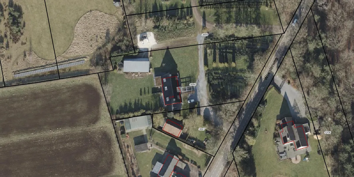 Het perceel waarop Woesterweg 4 staat heeft een oppervlakte van 3172 m². Dit is een zeer groot perceel. De perceeloppervlakte wordt geregistreerd door het Kadaster. Gedetailleerde informatie over de maten van dit perceel kunt u vinden in het rapport Kadastrale kaart met maatvoering van Woesterweg 4.