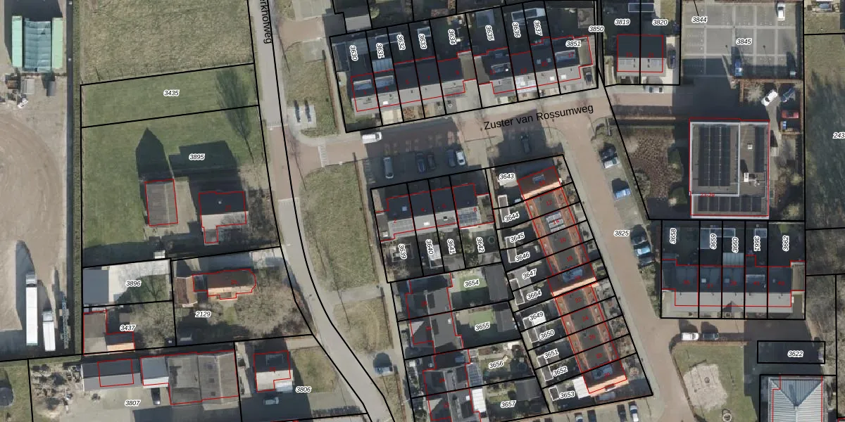 Gebruik de zoekbalk of klik op een perceel voor informatie over de adressen binnen dit perceel.