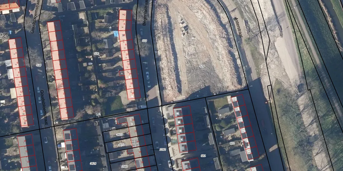 Het perceel waarop Begoniastraat 7 staat heeft een oppervlakte van 3225 m². Dit is een zeer groot perceel. De perceeloppervlakte wordt geregistreerd door het Kadaster. Gedetailleerde informatie over de maten van dit perceel kunt u vinden in het rapport Kadastrale kaart met maatvoering van Begoniastraat 7.