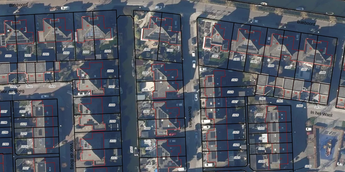 Het perceel waarop Bovendeks 15 staat heeft een oppervlakte van 300 m². Dit is een groot perceel. De perceeloppervlakte wordt geregistreerd door het Kadaster. Gedetailleerde informatie over de maten van dit perceel kunt u vinden in het rapport Kadastrale kaart met maatvoering van Bovendeks 15.