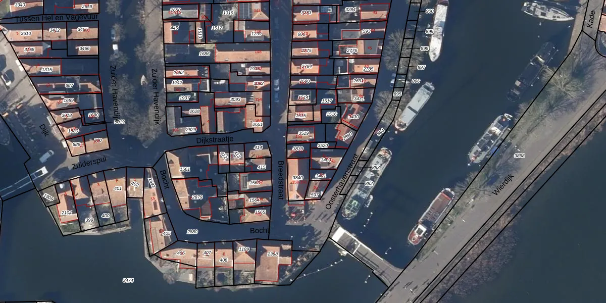 Het adres is gelegen op perceel 3839 in de sectie F en de kadastrale gemeente Enkhuizen. De kadastrale aanduiding is aldus EHZ00-F-3839. De gemiddelde perceelgrootte in Enkhuizen is 1,2 ha. Dit perceel is kleiner: de perceeloppervlakte bedraagt 36 m². Het grootste perceel in de kadastrale gemeente is 51,18 km². Het kleinste perceel heeft een oppervlakte van 0 m². Op het perceel zijn 2 adressen aanwezig. In de Basisregistratie Kadaster (BRK) werden de grenzen van het perceel geregistreerd op 06-12-2021.