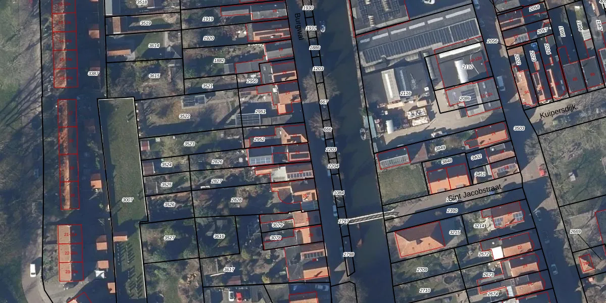 Het perceel waarop Burgwal 24 staat heeft een oppervlakte van 231 m². Dit is een middelgroot perceel. De perceeloppervlakte wordt geregistreerd door het Kadaster. Gedetailleerde informatie over de maten van dit perceel kunt u vinden in het rapport Kadastrale kaart met maatvoering van Burgwal 24.