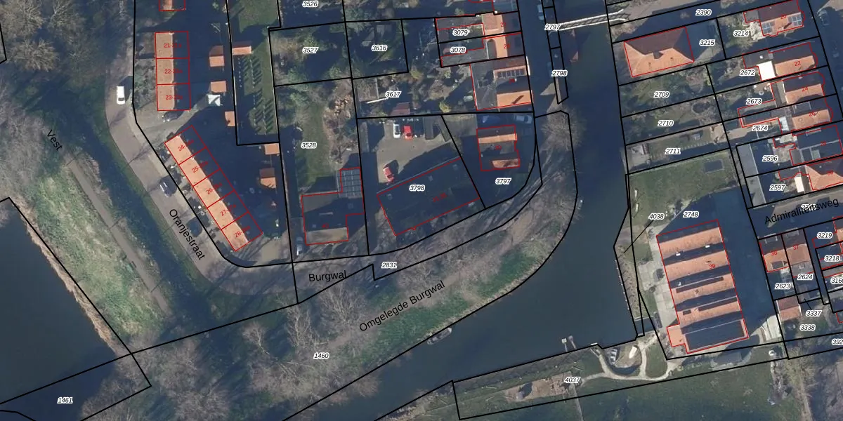 Het perceel waarop Burgwal 33 staat heeft een oppervlakte van 725 m². Dit is een groot perceel. De perceeloppervlakte wordt geregistreerd door het Kadaster. Gedetailleerde informatie over de maten van dit perceel kunt u vinden in het rapport Kadastrale kaart met maatvoering van Burgwal 33.