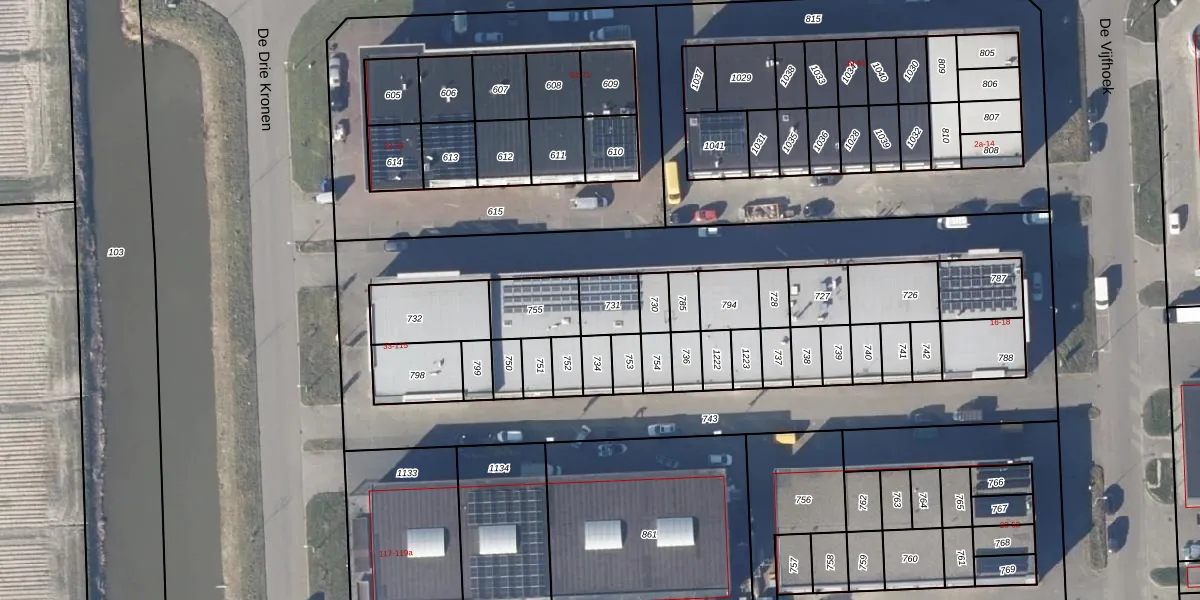 Gebruik de zoekbalk of klik op een perceel voor informatie over de adressen binnen dit perceel.
