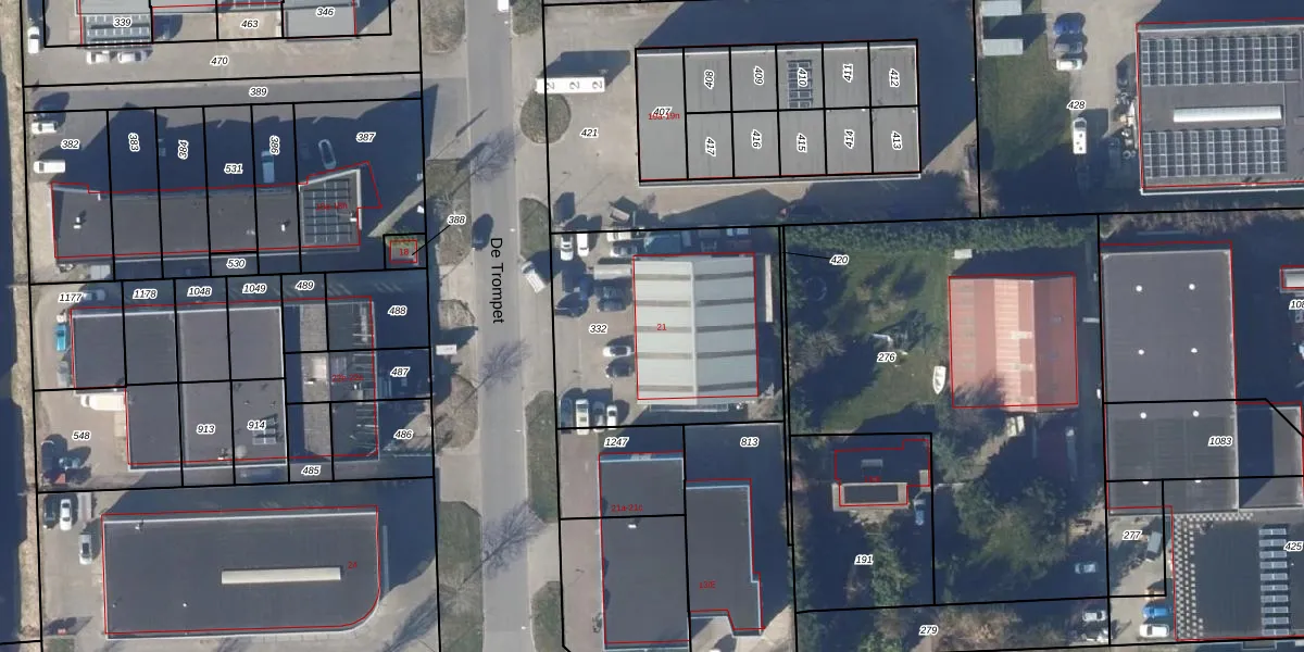 Het perceel waarop De Trompet 21 staat heeft een oppervlakte van 1050 m². Dit is een zeer groot perceel. De perceeloppervlakte wordt geregistreerd door het Kadaster. Gedetailleerde informatie over de maten van dit perceel kunt u vinden in het rapport Kadastrale kaart met maatvoering van De Trompet 21.