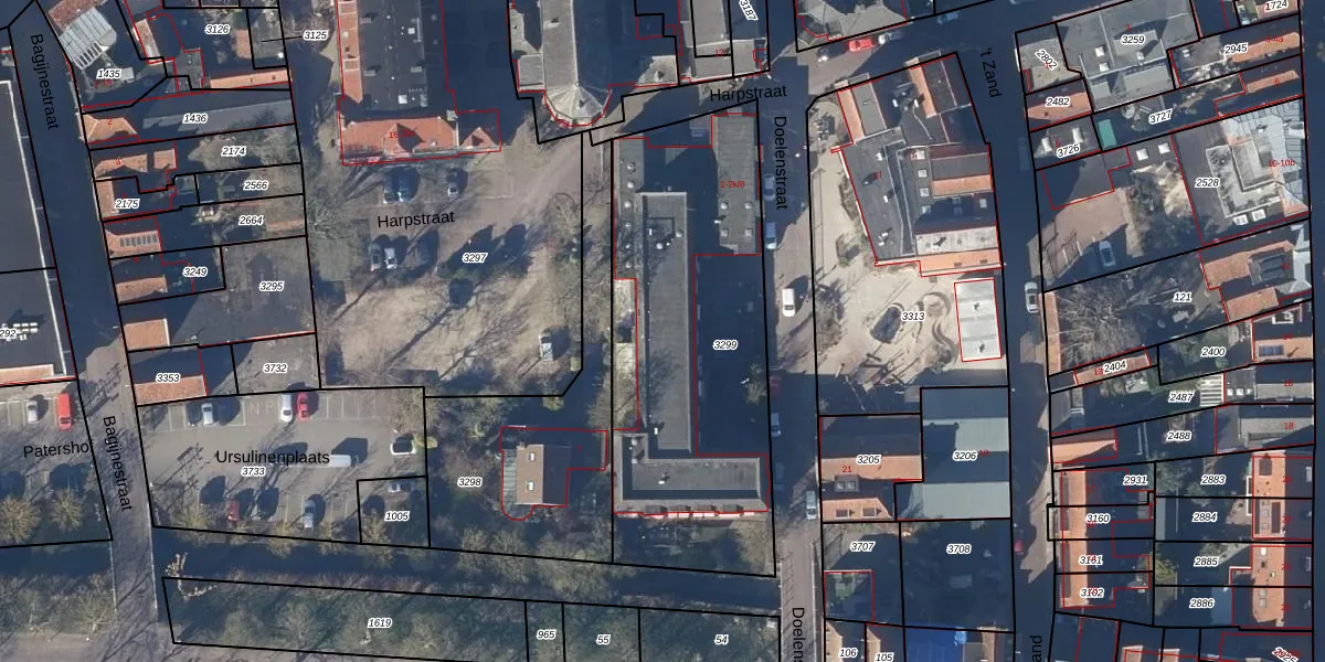 Het perceel waarop Doelenstraat 2-k-16 staat heeft een oppervlakte van 1559 m². Dit is een zeer groot perceel. De perceeloppervlakte wordt geregistreerd door het Kadaster. Gedetailleerde informatie over de maten van dit perceel kunt u vinden in het rapport Kadastrale kaart met maatvoering van Doelenstraat 2-k-16.