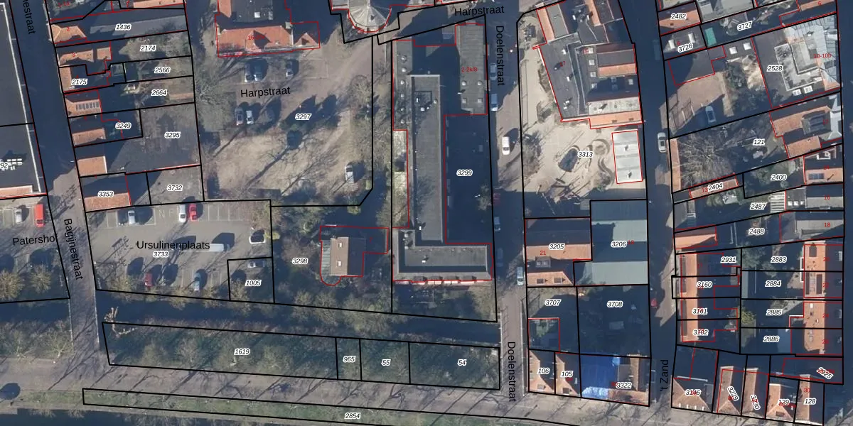 Het perceel waarop Doelenstraat 2-k-19 staat heeft een oppervlakte van 1559 m². Dit is een zeer groot perceel. De perceeloppervlakte wordt geregistreerd door het Kadaster. Gedetailleerde informatie over de maten van dit perceel kunt u vinden in het rapport Kadastrale kaart met maatvoering van Doelenstraat 2-k-19.