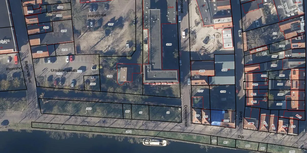Het perceel waarop Doelenstraat 2-k-22 staat heeft een oppervlakte van 1559 m². Dit is een zeer groot perceel. De perceeloppervlakte wordt geregistreerd door het Kadaster. Gedetailleerde informatie over de maten van dit perceel kunt u vinden in het rapport Kadastrale kaart met maatvoering van Doelenstraat 2-k-22.