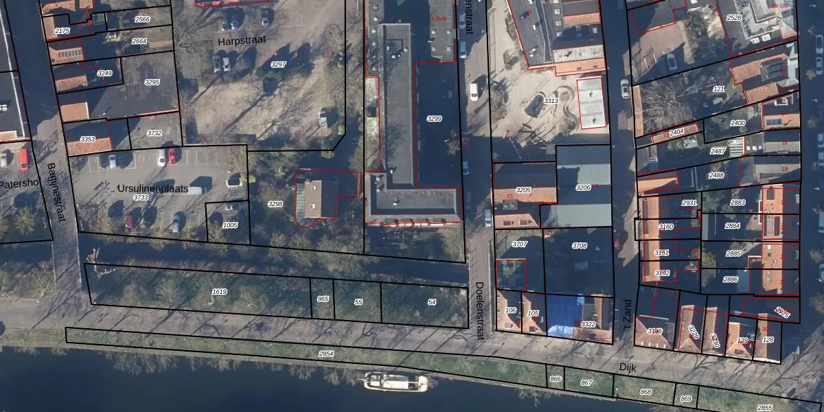 Het perceel waarop Doelenstraat 2-k-23 staat heeft een oppervlakte van 1559 m². Dit is een zeer groot perceel. De perceeloppervlakte wordt geregistreerd door het Kadaster. Gedetailleerde informatie over de maten van dit perceel kunt u vinden in het rapport Kadastrale kaart met maatvoering van Doelenstraat 2-k-23.
